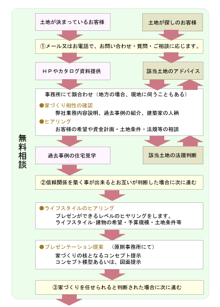 ご相談から設計監理契約までのフローを紹介いたします